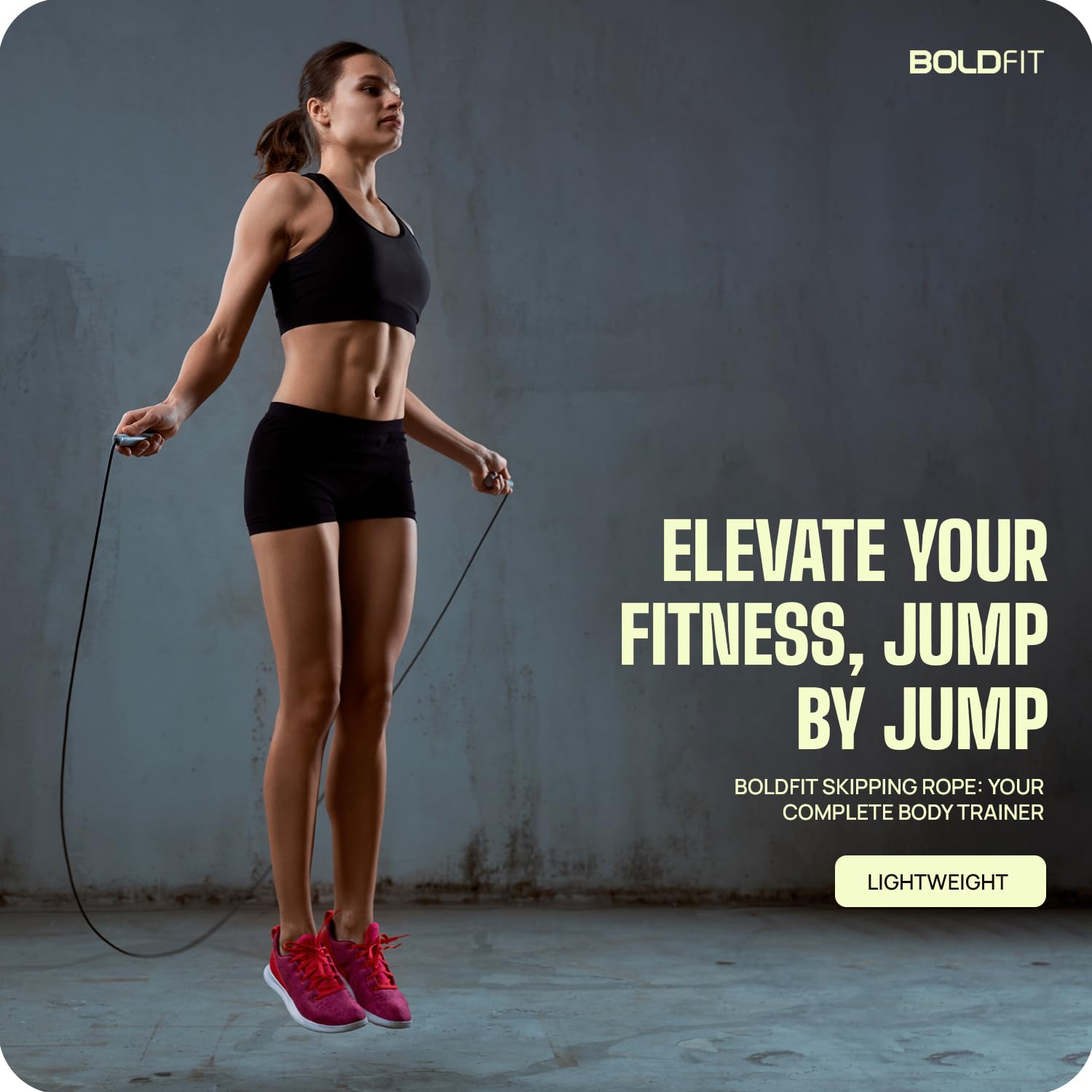 Boldfit Skipping Rope for Men and Women Jumping Rope With Adjustable Height Speed Skipping Rope for Kids, Women, Girls Rassi Jumping Men for Exercise, Gym, Sports Fitness - Black, Polyvinyl Chlorine