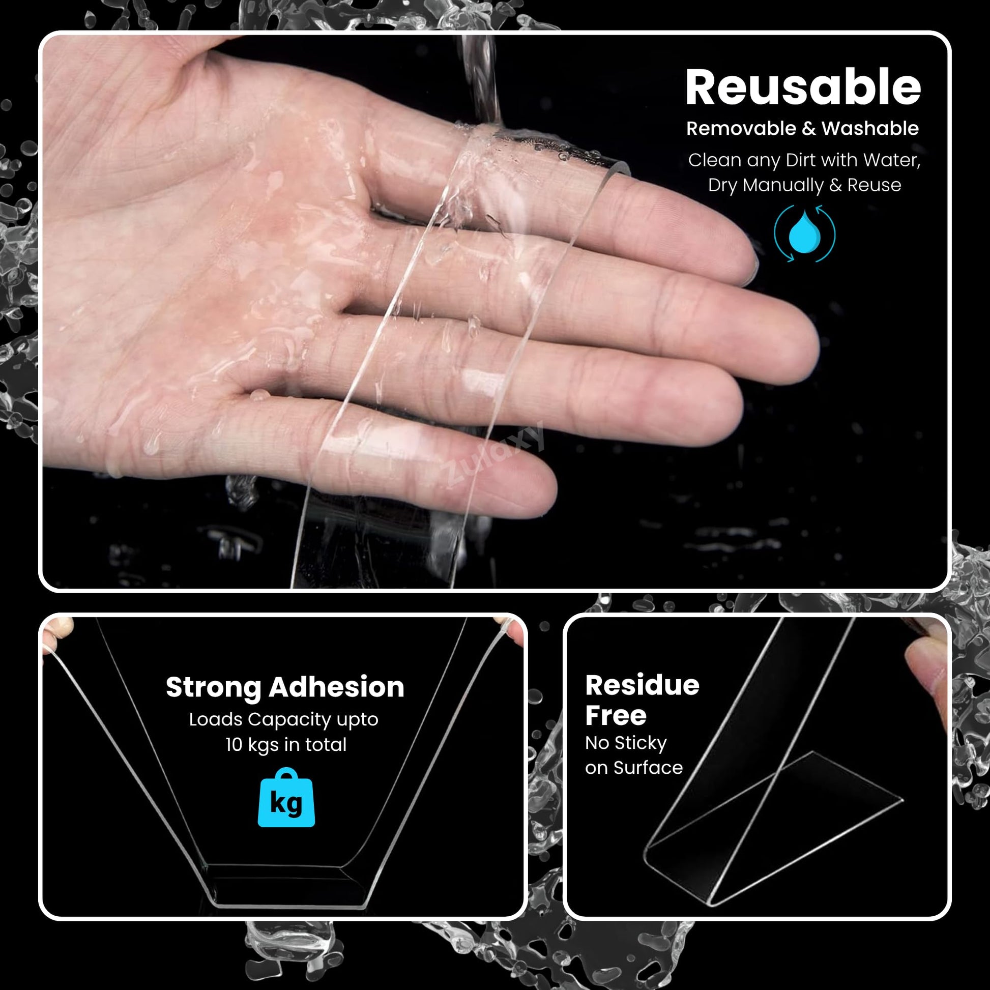 Zulaxy Double Sided Tape Heavy Duty for Wall, Strong Adhesive Transparent Nano Tape 3 Meter | Multipurpose Mounting Tape for Home, Office & Car Without Peeling Paint (Pack of 1)