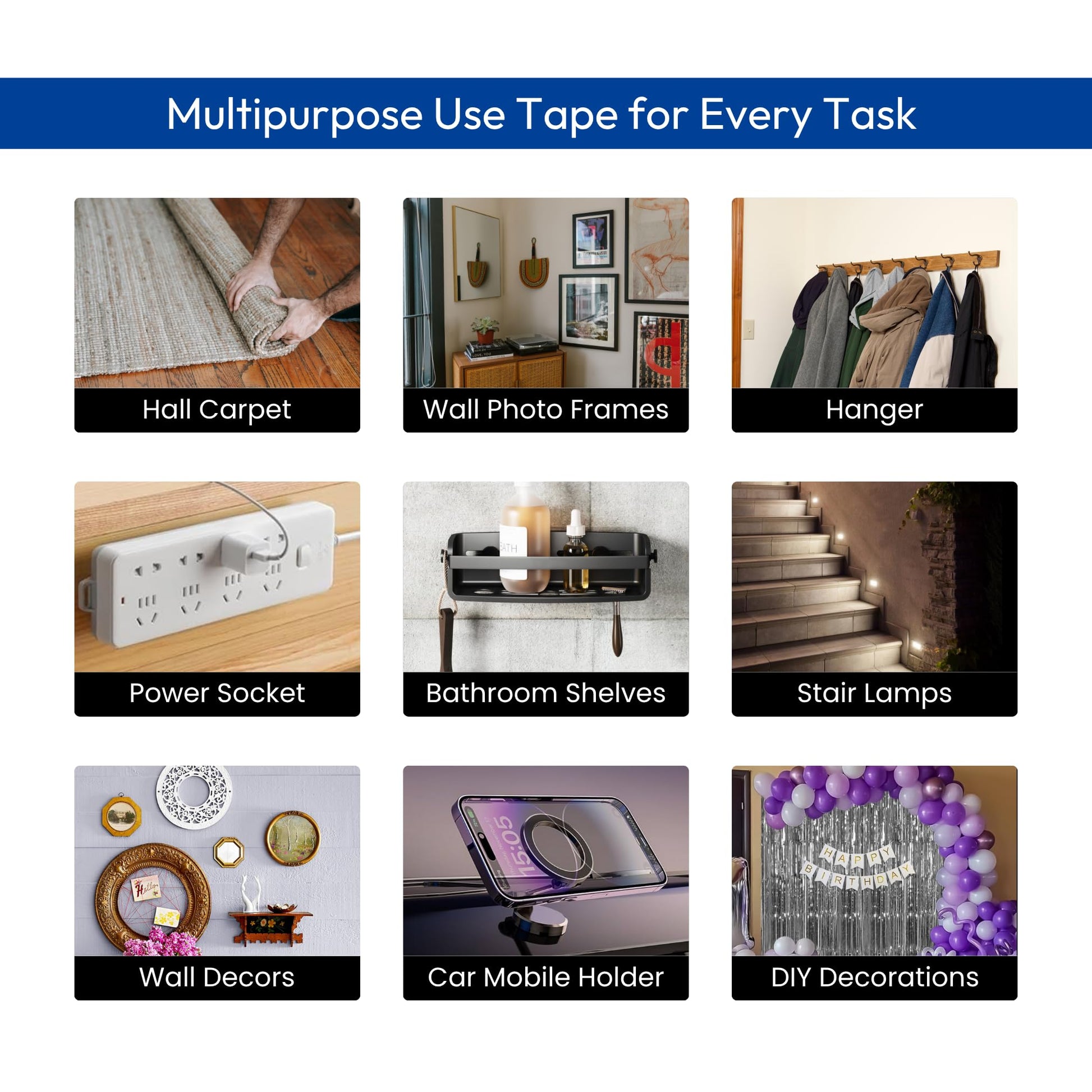 - Multipurpose Use: Perfect for home décor, kitchen, office, and car — ideal for mounting photo frames, bathroom accessories, carpets, or organizing cables without drilling or nails.